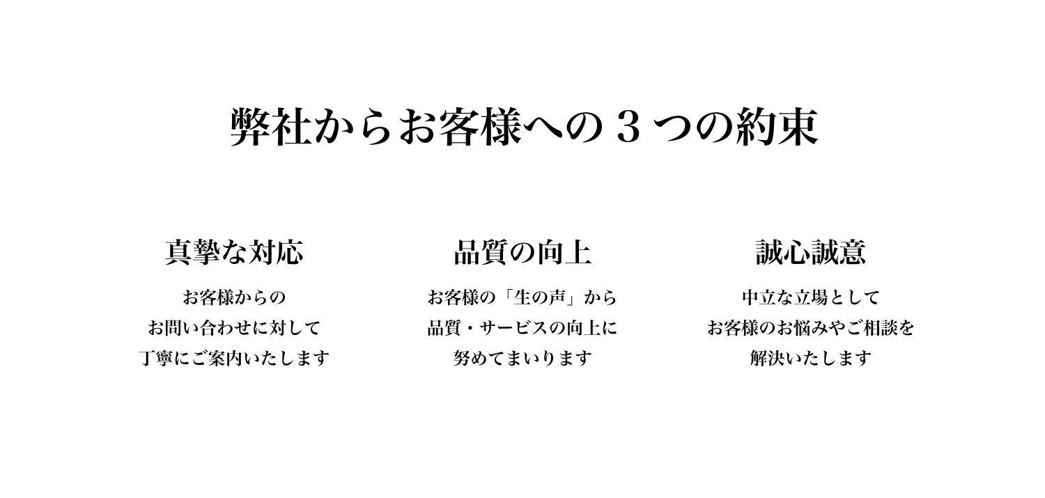 また、お客様の「生の声」を大切にし、中立な立場としてお客様のお悩みやご相談を解決し、品質・サービスの向上に努めてまいります。